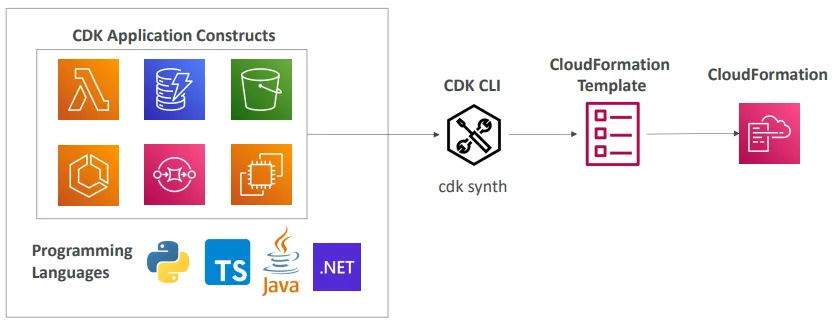 - 작성된 코드는 CloudFormation 템플릿(JSON/YAML)으로 컴파일됨