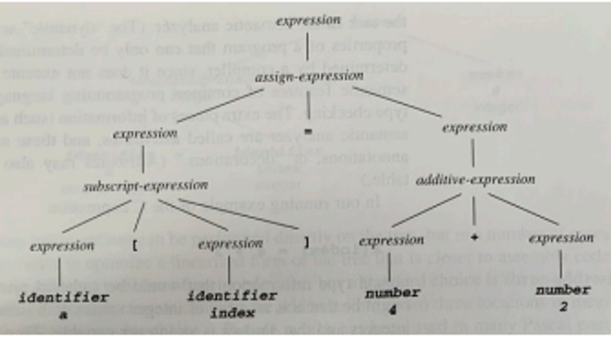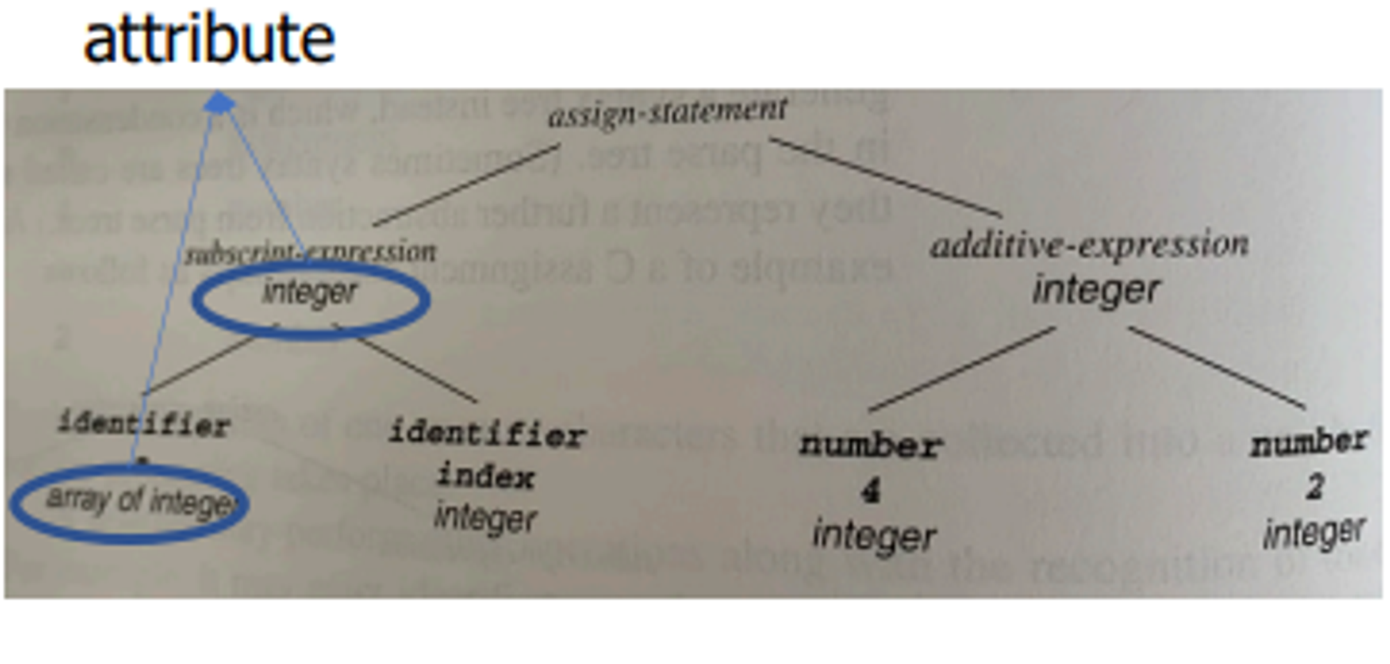 - 의미분석(Semantic analysis) : 구문분석트리에 속성들을 부착한 트리를 생성