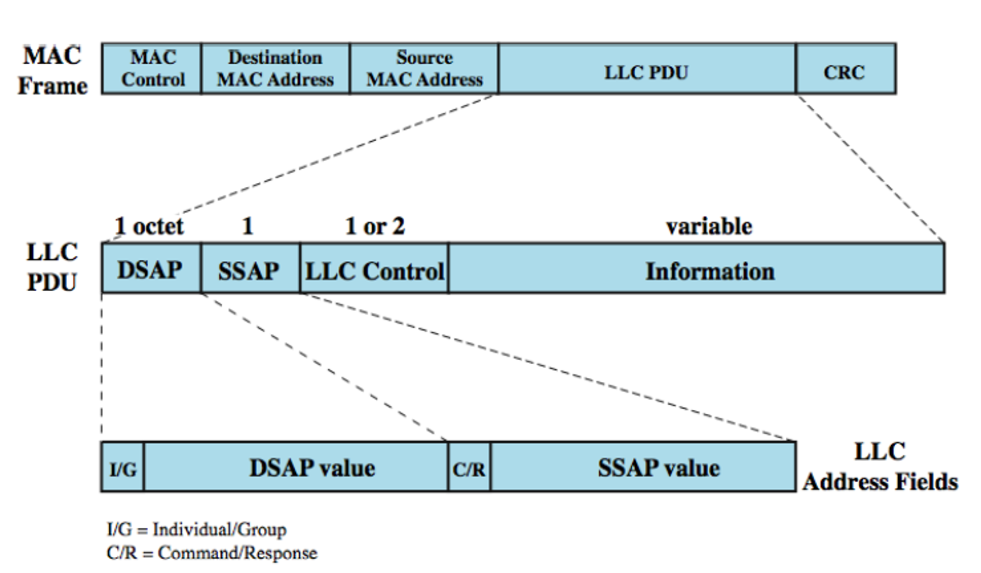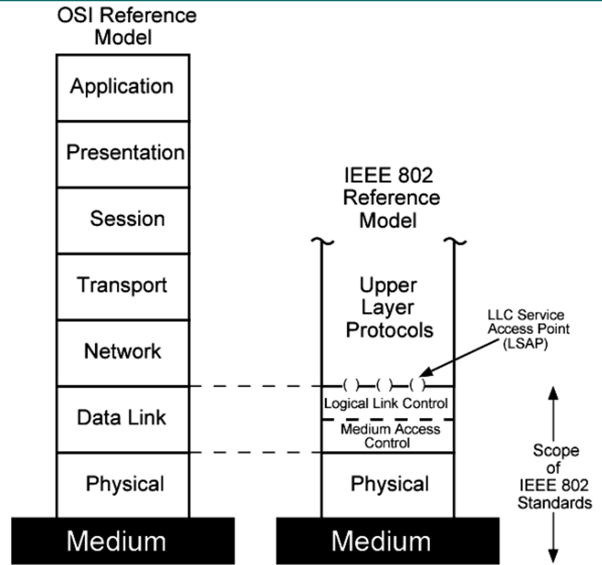 • Data link layer는 medium access control(mac, 매체 접속 제어)과 logical link control(llc)로 나누어짐