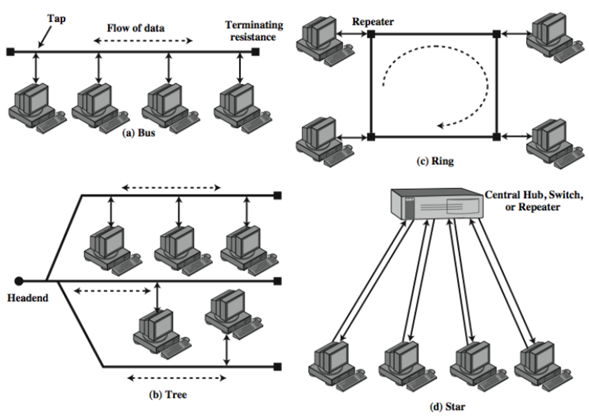 • LAN의 기본요소 : 토폴로지, 매체, wiring layout, medium access control(mac) 프로토콜