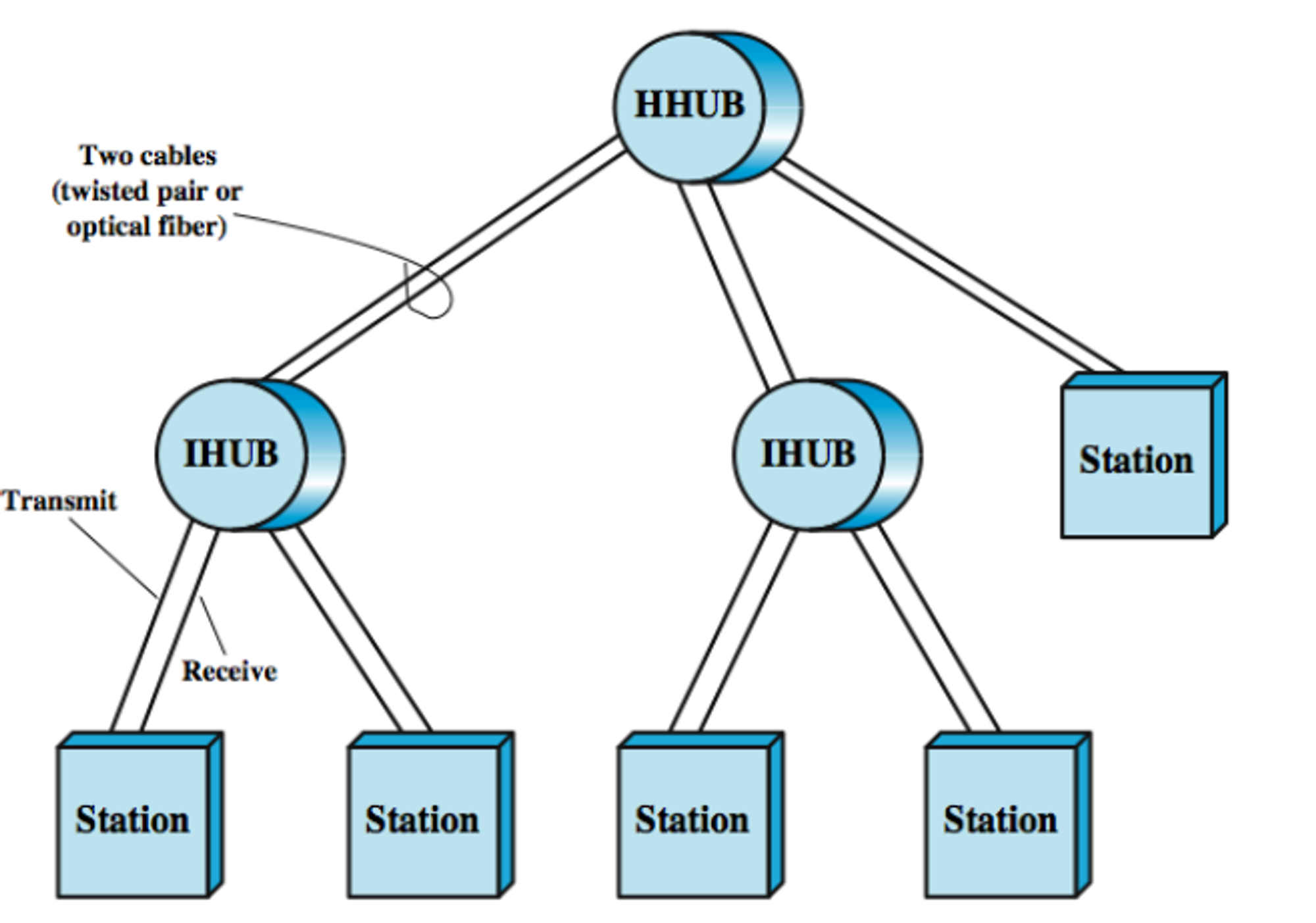 - 리피터로 구성, 리피터를 통해서 스테이션이 연결