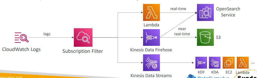 - CloudWatch Logs는 다음 대상으로 로그를 전송할 수 있음: