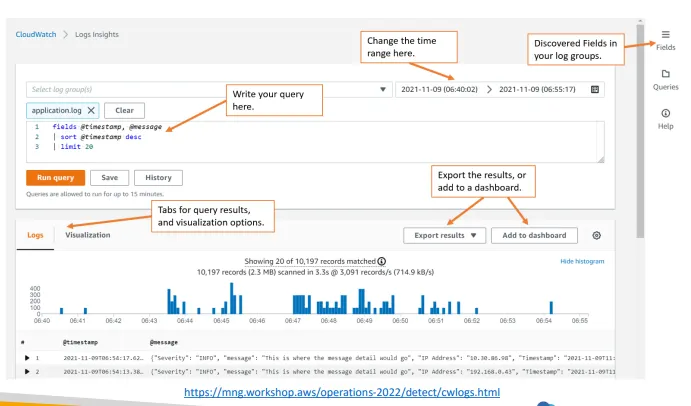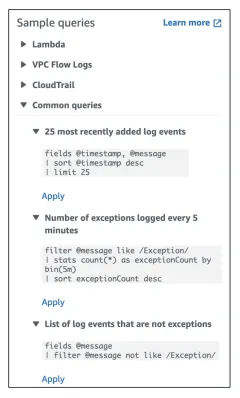 - 쿼리를 저장하여 CloudWatch 대시보드에 추가할 수 있음