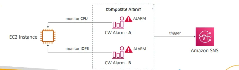 - 복합 알람(Composite Alarm)은 여러 개의 다른 알람 상태를 함께 모니터링함