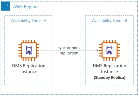 - Multi-AZ가 활성화되면, DMS는 다른 가용 영역에 동기식으로 복제되는 대기 복제본을 프로비저닝하고 관리