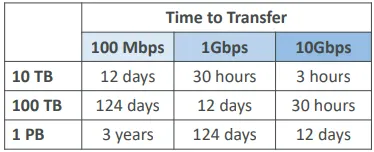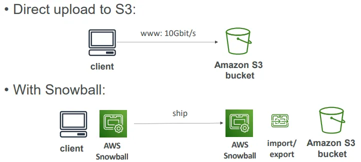 - 네트워크를 통해 데이터 전송에 1주 이상 걸리는 경우, Snowball 디바이스를 사용하는 것이 권장됨