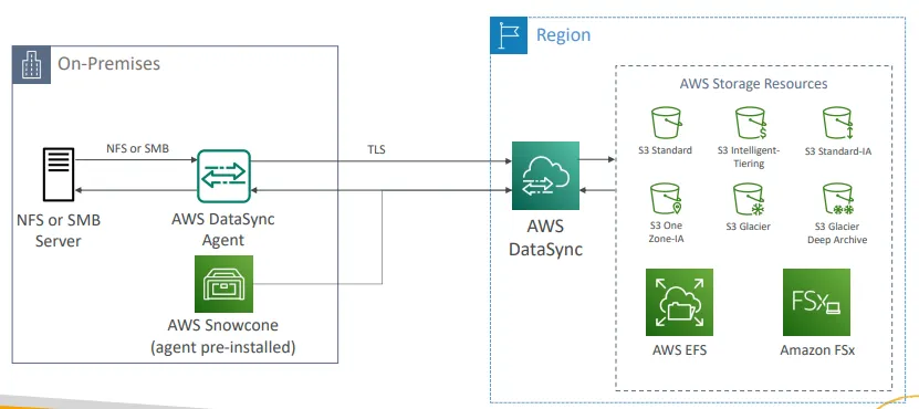 - 온프레미스 또는 다른 클라우드에서 AWS로 전송할 때 (NFS, SMB, HDFS, S3 API 등) → 에이전트 필요