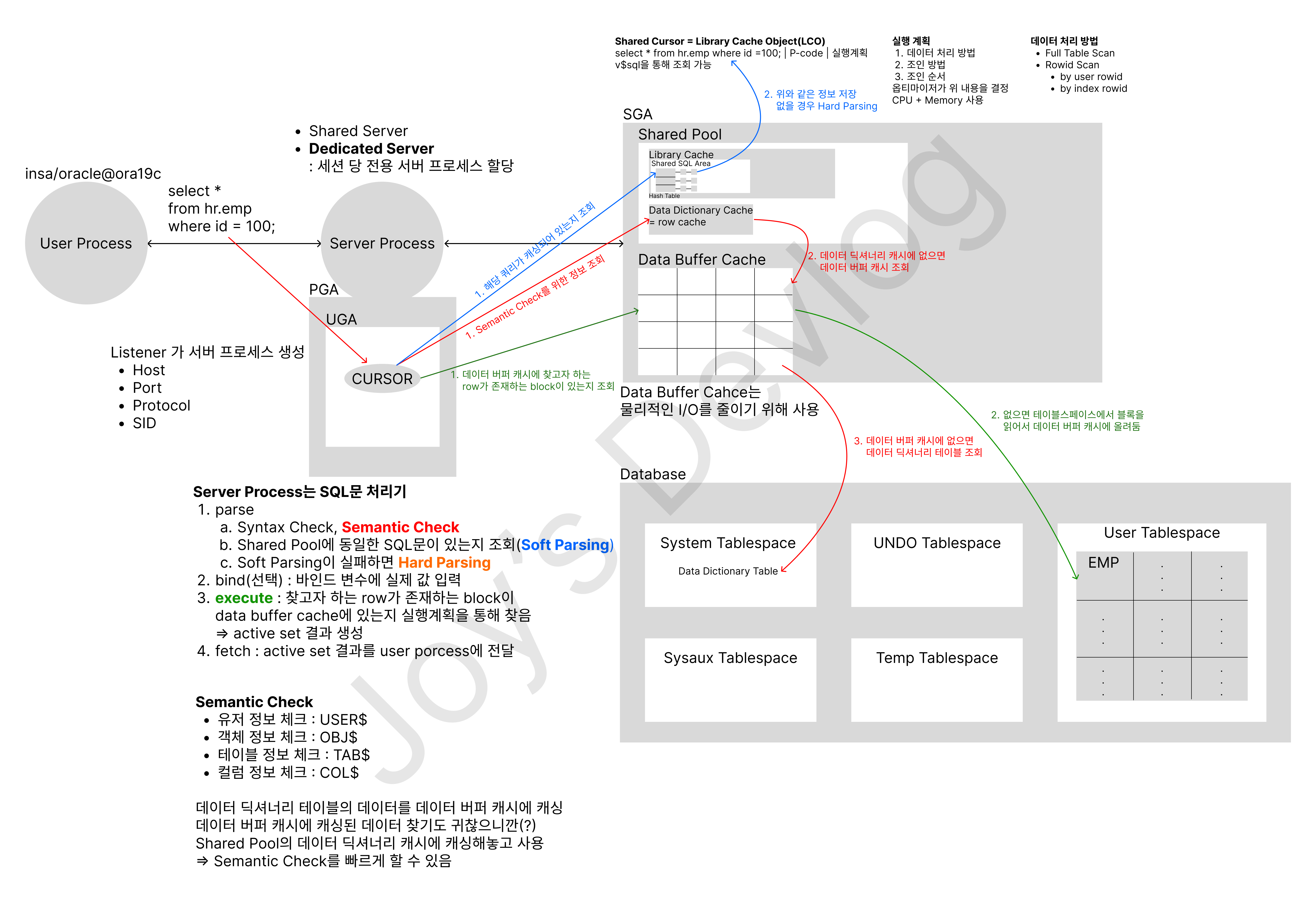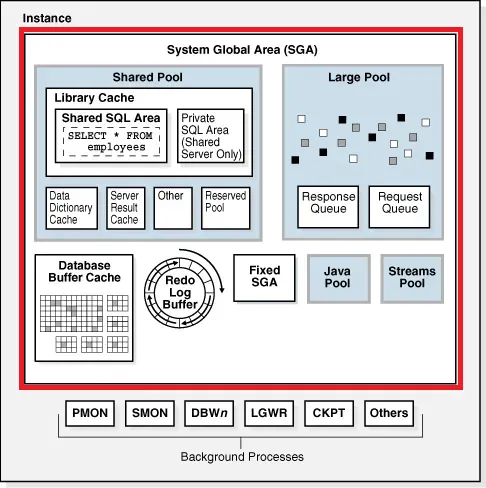 - 모든 오라클 프로세스가 액세스 하는 공유 메모리