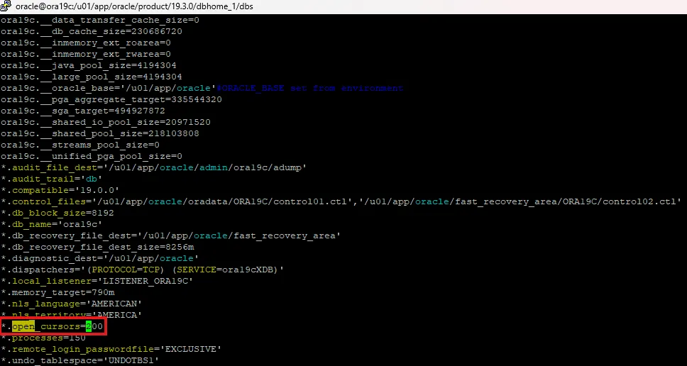 [oracle@ora19c dbs]$ vi $ORACLE_HOME/dbs/initora19c.ora